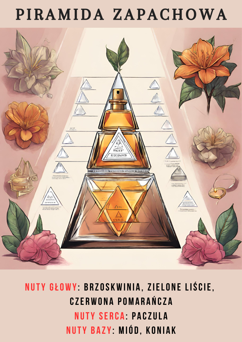 Nutami głowy są: Brzoskwinia, Zielone liście i Czerwona pomarańcza; nutą serca jest: Paczula; nutami bazy są: Miód i Koniak.