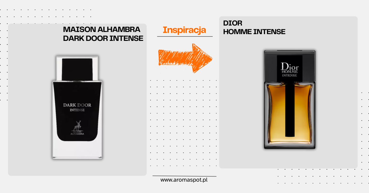 Dark Door Intense marki Maison Alhambra to elegancka, aromatyczna kompozycja inspirowana kultowym Dior Homme Intense. Już od pierwszego psiknięcia lawendowe otwarcie otula świeżością i delikatnym chłodem, budując idealne tło dla dalszego rozwoju zapachu. W sercu pojawia się aksamitny irys, który nadaje kompozycji kremowej głębi, podczas gdy ambrette subtelnie otula skórę lekką, piżmową aurą, a gruszka wprowadza delikatną, owocową słodycz.