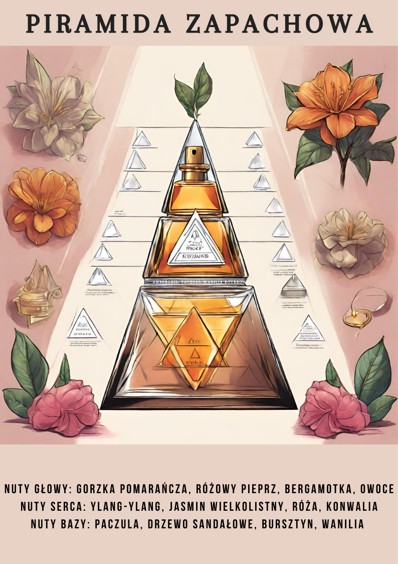 Główne akordy: drzewny, cytrusowy, białe kwiaty, żółtych kwiatów, paczulowy, ciepły korzenny, słodki, ambrowy, lekko korzenny, różany.