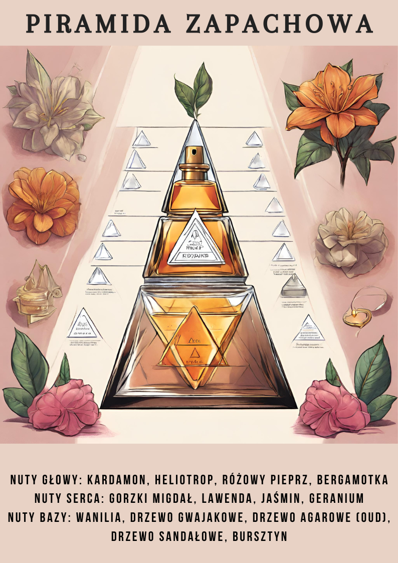 Nutami głowy są: Heliotrop, Kardamon, Czerwony pieprz i Bergamotka; nutami serca są: Migdał, Lawenda, Jaśmin i Geranium; nutami bazy są: Drzewo sandałowe, Drzewo gwajakowe, Wanilia i Ambra.