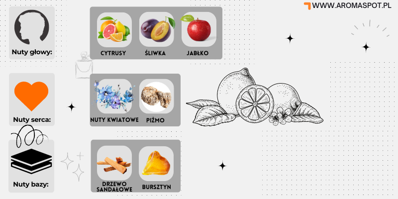 Główne akordy: owocowy słodki kwiatowy drzewny piżmowy bursztynowy