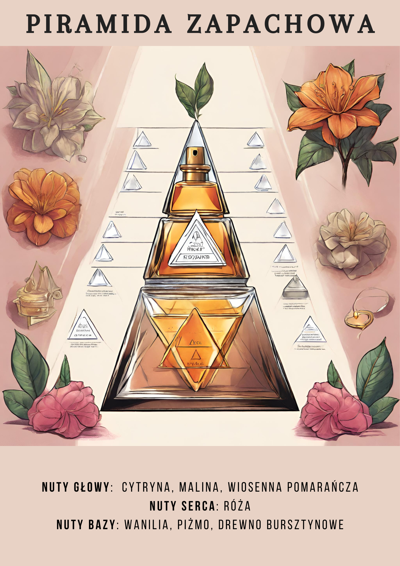 Główne akordy: owocowy słodki różany waniliowy cytrusowy piżmowy pudrowy ambrowy drzewny
