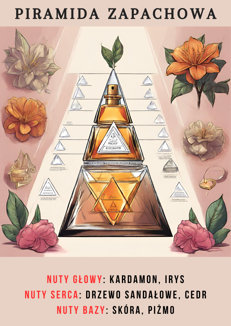 Główne akordy: drzewny pudrowy ciepły korzenny irysowy skórzany piżmowy aromatyczny zwierzęcy fiołkowy