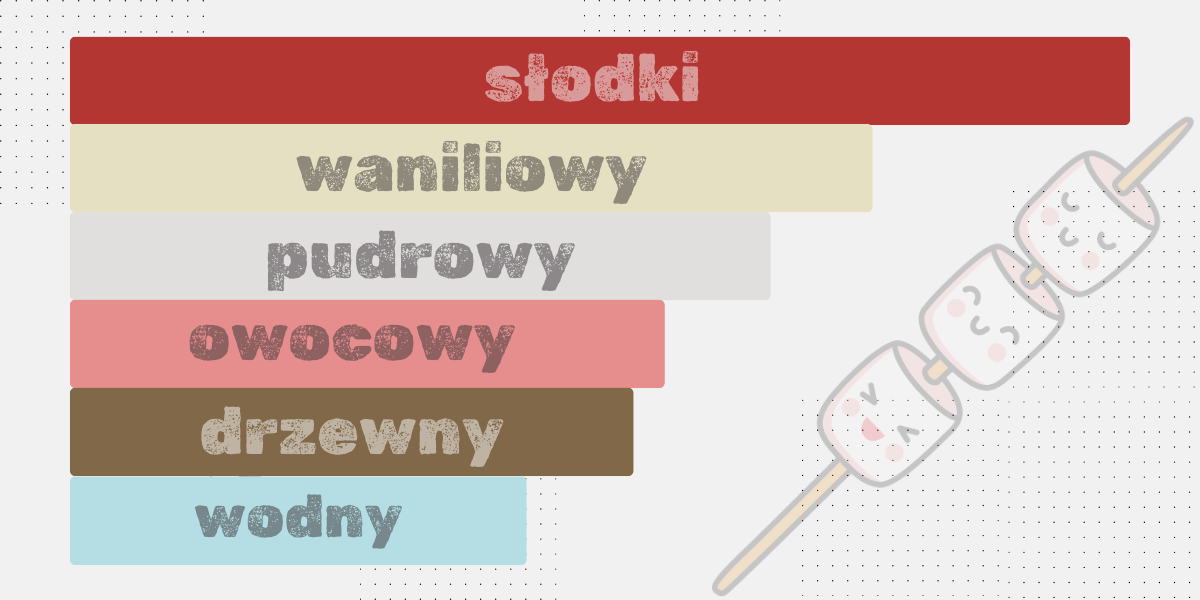 Główne akordy: słodki waniliowy pudrowy owocowy drzewny wodny