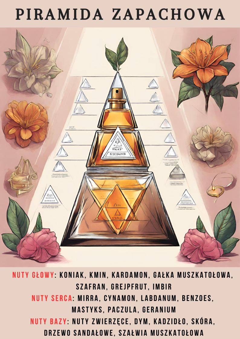 Nutami głowy są: Koniak, Kmin, Kardamon, Gałka muszkatołowa, Szafran, Grejpfrut i Imbir; nutami serca są: Mirra, Cynamon, Labdanum, Benzoes, Mastyks, Paczula i Geranium; nutami bazy są: Nuty zwierzęce, Dym, Kadzidło, Skóra, drzewo sandałowe i Szałwia muszkatołowa.